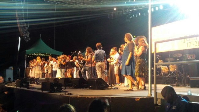 All Seeger Fest Day 5 performers gathered onstage for the finale of "New Songs of Justice" Add new comment