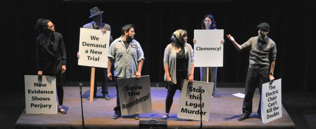 Recreation of a rally in NYC on the final night of the Rosenbergs' lives