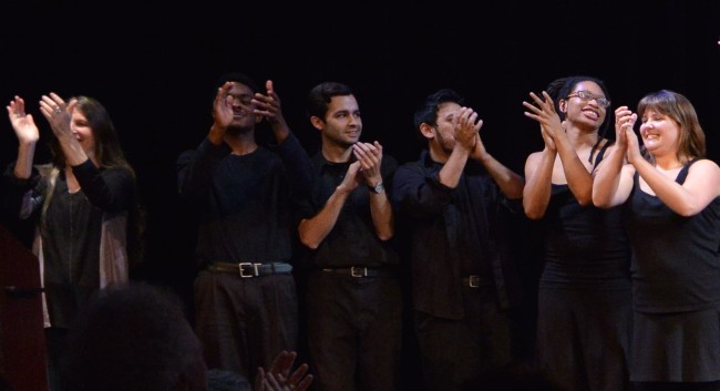 Sheryl Stoodley and actors from her Serious Play! Theatre Ensemble during the finale