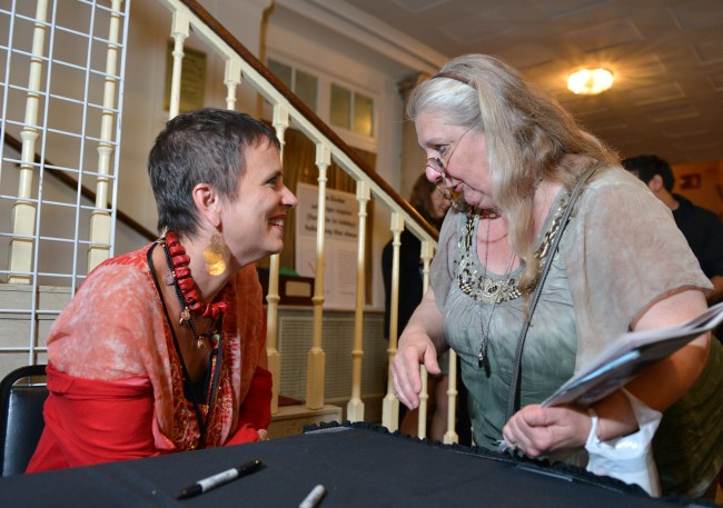 Audience members lined up for a chance to have Eve Ensler sign their books