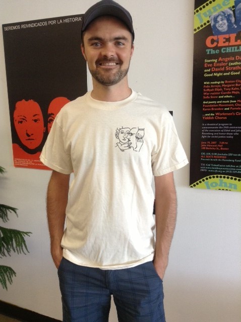Front of Carry it Forward t-shirt featuring Fernand Leger drawing of the Rosenbergs