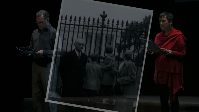 Cotter Smith and Eve Ensler reading Julius and Ethel Rosenbergs' prison letters, with Robby and Michael (Rosenberg) Meeropol and their grandmother in front of the White House seeking clemency Add new comment